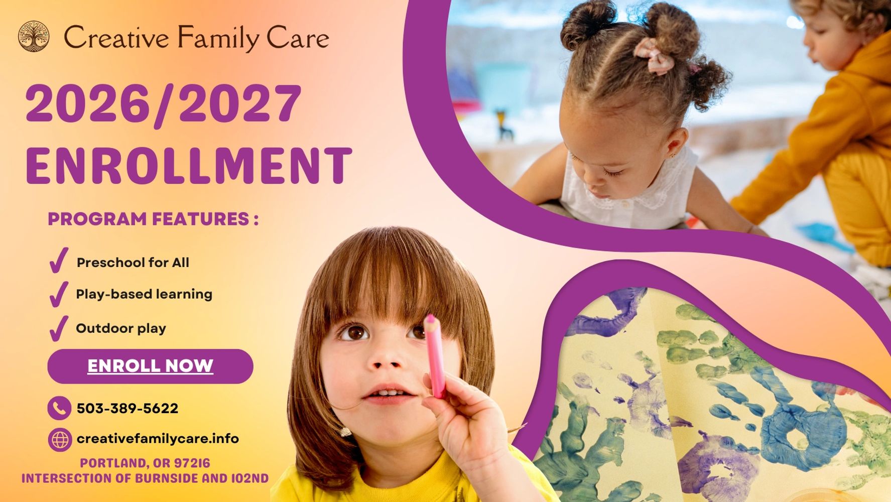 Creative Family Care proudly serves children of all abilities and partners closely with families to ensure individualized support and equitable access to early learning. Nutritious meals and snacks are provided daily, and low staff-to-child ratios ensure personalized, responsive care.